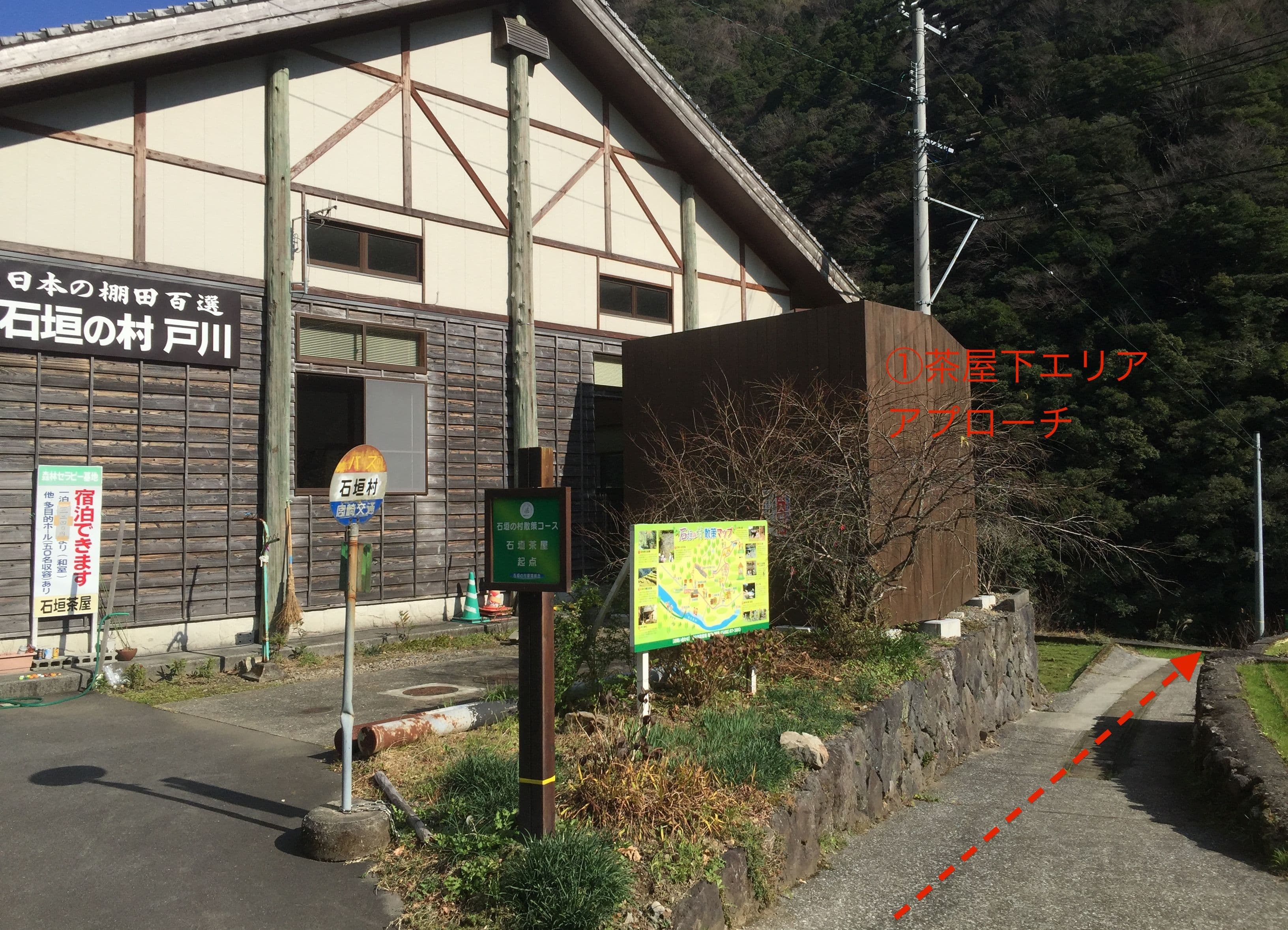 石垣茶屋駐車場を利用させて頂きます。奥から3台まで駐車して下さい。駐車の際は石垣茶屋の方にひと声かけて駐車させてもらって下さい。駐車場がいっぱいや、ご迷惑になるような場合は、200m先の広い離合スペースに寄せて詰めて駐車下さい。