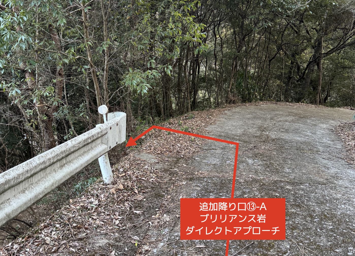看板から直進200m先に大きな空き地があります。材木が置いてある場所です。目印は先にプレハブ小屋とスマイルバスのバス停があります。“諸和久”と書いてあります。プレハブ付近に駐車してください。