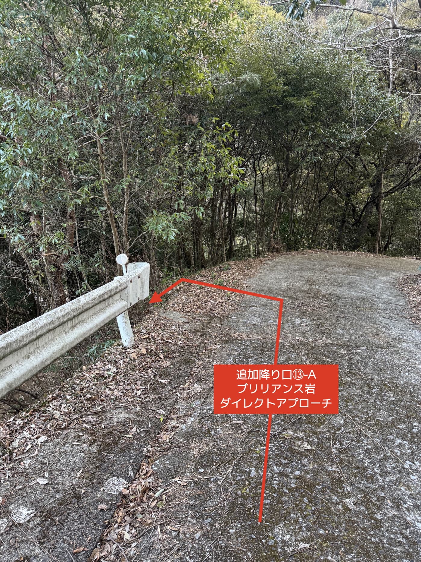 看板から直進200m先に大きな空き地があります。材木が置いてある場所です。目印は先にプレハブ小屋とスマイルバスのバス停があります。“諸和久”と書いてあります。プレハブ付近に駐車してください。